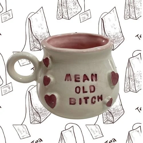 They’re sassy and cute just like you! Decorative ceramic tea cups. Slip cast clay adorned with some attitude and demur touches.